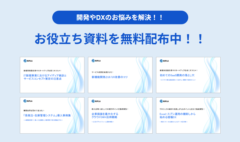 株式会社riplaでは、IT事業会社出身のプロフェッショナルが「Impact-Driven型支援」を通じて、プロダクトやシステムの納品・提供を目的とせず、お客様と同じ目線で、事業成果の達成をゴールとして、高品質なDX/開発支援をいたします。